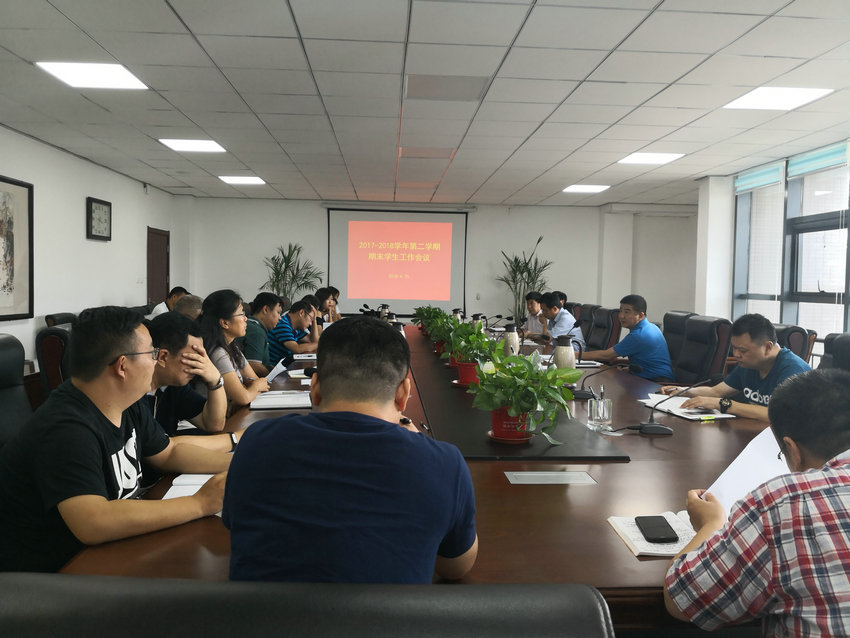 6月25日下午,学院在新校区召开2017-2018学年第二学期期末学生工作会议,学院工会主席张瑞春、各系(院)学生工作负责人及学生工作处相关人员参加了会议。会议由张瑞春主持。