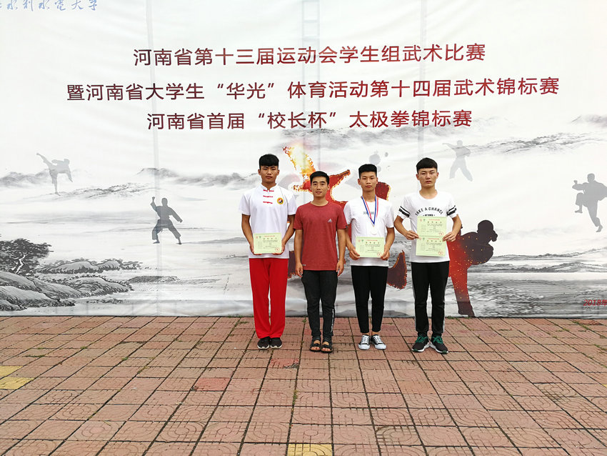 7月14日上午,河南省第十三届运动会学生组武术比赛暨河南省大学生“华光”体育活动第十四届武术(套路)锦标赛在华北水利水电大学落下帷幕,学院三名学生代表在团委的组织带领下参加了专科组比赛角逐,并荣获优良成绩。