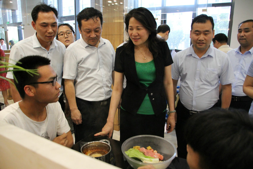 在调研产教融合工作的同时,霍金花还非常关心学生的生活,参观了学院士官生公寓和学生食堂。
