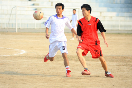 11月11日下午三点半,我院银河足球协会与河南工业大学化工职业技术学院足球队进行了一场激烈的足球比赛。