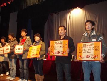 随后,大会向获得2007-2008学年学院奖学金的215名同学颁发了荣誉证书,向获得表彰的先进集体和个人颁发了奖状、证书和奖品。获奖的先进集体和先进个人代表先后进行了发言,他们在学风建设、班级建设、个人奋斗、立志成才方面的感人事迹深深触动了台下了400名学子,大家深受感染启发。