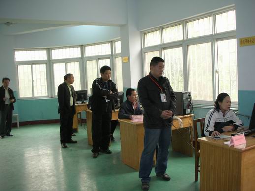 4月24日,交通运输部道路运输司领导在省交通运输厅人劳处和道路运输局有关负责人的陪同下来河南交通职业技术学院检查机动车检测维修专业技术人员职业水平考试情况。