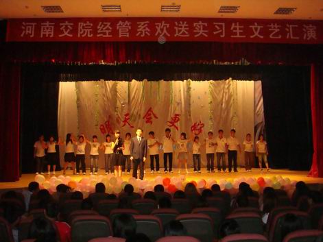 为欢送05、07级实习生、活跃校园文化生活,6月11日晚经济管理系在艺术中心举办了“明天会更好”欢送实习生文艺晚会。