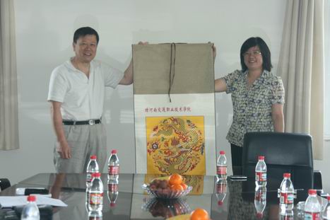 王书记向客人介绍了学院的发展历程,夏连学副院长向客人介绍了学院教学改革发展情况,详细了介绍学院师资队伍与专业建设情况。贾俐俐院长代表南京交职院感谢河南交院的热情接待和经验介绍,并向学院赠送礼品。座谈会后,客人们参观了学院道桥实训中心与汽车实训中心。