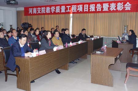 4月14日下午,学院隆重召开教学质量工程建设项目报告暨表彰大会,省交通运输厅副厅长霍金花在厅科教处宋华东处长陪同下出席大会并做重要讲话,学院领导班子全体成员、中层领导和各系教研室主任参加了会议。