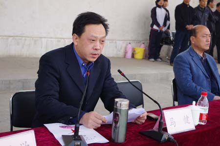 马健书记为本届运动会作了激情洋溢的致词。马书记讲,运动会是对我院体育工作的一次大检阅,更是各参赛单位群体意识、竞争意识、团队精神、拼搏精神的一次大展示。近年来,学院高度重视体育工作,加大投入,运动健儿在赛场上捷报频传,屡创佳绩。在河南省第十五届大学生田径运动会上,我院勇夺两枚金牌;在第一届全国大学生合球锦标赛中取得第六名的好成绩。同时,马书记对本届运动会提出几点希望,一是希望全体运动员团结协作、拼搏进取,赛出风格,赛出水平、赛出成绩,全面展示当代大学生朝气蓬勃的时代风采;二是希望全体教练员、裁判员和工作人员努力工作、公正裁决、尽职尽责;三是希望大家共同努力,携手把本届运动会办成隆重、热烈、精彩,充满激情和活力的体育盛会,争取运动成绩和精神文明双丰收。