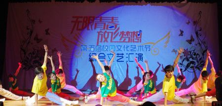 表彰大会结束后进行了学院第五届校园文化艺术节闭幕式综合文艺汇演。马书记一行与师生们一起兴致勃勃地观看了演出。演出结束后,马书记等学院领导走上舞台和同学们一一握手祝贺演出成功,并与全体演员合影留念。