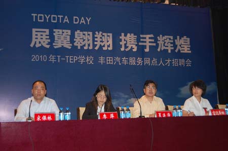 5月7日,“展翼翱翔,携手辉煌”2010年丰田汽车服务网点人才招聘会在我院艺术中心隆重举行并取得圆满成功,本次招聘会是我院连续第六年举行丰田专场招聘会,副院长夏连学和汽车工程系相关负责人参加了招聘活动。