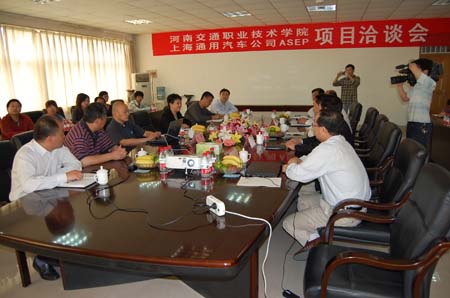 上海通用汽车有限公司考察人员与我院相关负责领导、汽车系教师在三楼会议室举行了座谈会。李亚杰院长为座谈会致辞,对上海通用汽车有限公司来我院考察表示欢迎。解福泉副院长对学院情况进行介绍。上海通用汽车ASEP项目主管李衡着重介绍了ASEP的发展历程,上海通用ASEP项目的概念、理念、培训模式以及2005-2010年SGMASEP校企合作项目主要实施现状,2010年的实施计划和主要改善项目,并对合作的程序进行了详细的介绍。白晓璎经理讲话充分肯定了我院在汽车职业教育方面的雄厚实力,表达了愿与我院达成强强联合的意愿。交通运输厅马健副巡视员代表省厅表态,大力支持学院与上海通用的合作。