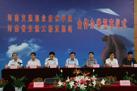 李亚杰院长和尹如军站长分别为合作办学签字仪式致辞。李院长在致辞中介绍了学院在与行业企事业单位合作办学方面的成绩,阐述了此次合作办学的重要意义,表达了与定额站友好合作、携手并进,为推动河南交通运输事业又好又快发展贡献力量的衷心祝愿。尹如军站长在致辞中分析了学院与定额站强强联合的可行性及合作将会带来的巨大效益,表达了做好合作工作的诚心和决心,并对学院的发展寄予美好祝愿。