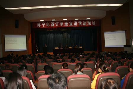 根据校企合作意向,河南苏宁电器有限公司将与我院共建苏宁订单班,根据学生报名人数拟建立苏宁连锁班、苏宁物流班、苏宁营销班、苏宁会计班等。此次活动是组建苏宁订单班的第一步工作程序,11月初苏宁订单班将进入面试、组班等环节。
