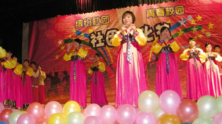 各社团精心准备的文艺演出为本届社团文化节画上了圆满的句号。气势磅礴的《精忠报国》、极富感染力的手语表演《星月神话》、优美的民族舞《碧波孔雀》、诙谐幽默的相声《夜行记》、小品《送水工》,更有舞蹈协会指导老师王蕾饱含深情的歌曲《万岁中国》将晚会推向高潮。
