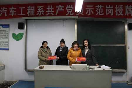 汽车工程系继12月13日召开学习董厅长讲话精神和徐书记解放思想大讨论动员指示以及李院长重要工作部署会议之后,12月22日下午,汽车工程系党总支组织全系教师召开了共产党员示范岗授牌仪式,对在共产党员“创先争优”活动中表现优异的集体和个人颁发了示范岗荣誉牌匾。汽车工程系营销教研室和燃气工程教研室被评为共产党员示范岗集体,于海洋和付歆娟老师被评为共产党员示范岗个人。
