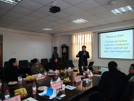 2011年1月6日,在河南公路港务局集团有限公司领导和郑州市教育对外交流协会领导的引荐下,我院与新加坡物流管理学院院长Roger Lee教授在办公楼三楼会议室协商合作办学事宜。河南公路港务局集团有限公司高波董事长、王洛生书记,郑州市教育对外交流协会杜海祥秘书长,学院李亚杰院长、夏连学副院长和经济管理系李建丽主任、闫洪林副主任等出席了会议。