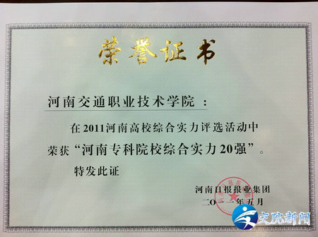 (我院代表领奖) 备受关注的“给力中原经济区建设・河南高校教育改革发展高峰论坛” 暨“2011河南高校综合实力20强”颁奖典礼5月15日上午在河南省人民大会堂隆重举行,我院荣膺“2011河南专科院校综合实力20强”,学院副院长毛新年作为嘉宾获邀参加此次论坛并代表学院领取奖项。省人大常委会党组书记、副主任李柏拴,中国系统科学学会副理事长、著名经济学家、北京大学党委副书记于鸿君等为入选院校颁发了奖牌和证书。 本次活动由河南日报报业集团携手大河网等省内主流媒体共同打造,以“培养科技创新型人才,服务中原经济区建设”为核心思想,深入探讨创新高校教育管理体制和人才培养模式,如何更好地为服务中原经济区建设提供强大的人才支撑和智力支持。颁奖典礼上揭晓了“2011河南本科院校综合实力20强”、“2011河南专科院校综合实力20强”、“2011河南发展(成长)最快的院校”等四个奖项。本次活动的评选结果是在网民投票、专家投票并结合院校数据的基础上最终确定的。 “2011河南专科院校综合实力20强”是我院继2010年荣获“2010年度河南考生心目中最理想的高校”之后又一殊荣,再次表明了社会各界对我院教学质量和办学实力的高度认可。 (供稿:学工处 图/文 郭强) |