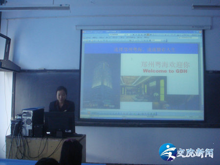 宣讲会上,郑州粤海(国际)人力资源经理张晓燕女士首先就郑州粤海酒店所属的粤海(国际)酒店管理集团的企业历史、文化、传统做了精彩介绍,并详细介绍了郑州粤海酒店的风格、特色。随后,张经理就酒店员工的职业发展计划、大学生培养计划、实习生待遇做了细致讲解,给我院旅游管理专业学生在职业发展方向增加了信心。