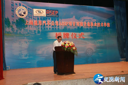 6月8日,上海通用汽车ASEP项目合作办学授牌仪式暨第二届ASEP班招聘会在我院举行,上海通用售后培训经理白小璎、汤彦�,河南省交通运输厅道路运输管理局副局长杨家齐,我院副院长毛新年、解福泉和张瑞春以及来自我省的15家上海通用汽车公司的经销商及凯迪拉克河南经销商参加了此次活动,授牌仪式由毛新年副院长主持。