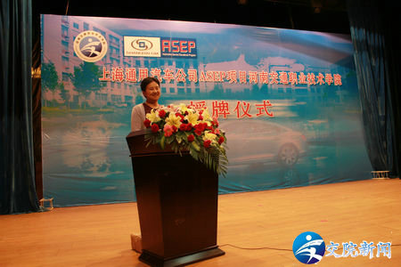 随后上海通用售后培训经理白小璎女士发表了讲话,她对一年多来上海通用与学院的合作表示满意,表示上海通用将继续与学院进行更深层次的合作,也对今后ASEP项目的运作提出了更高的希望。最后,张瑞春副院长代表学院接受了白小璎女士代表上海通用汽车公司授予的ASEP校企合作办学项目牌匾。