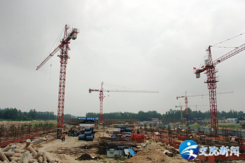 (塔吊林立,建设工地一片繁忙,新校区将拔地而起)