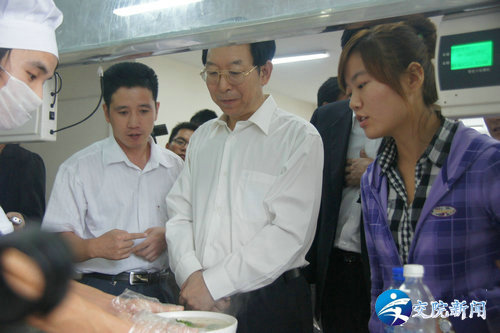 最后,孙廷喜厅长一行到学院餐厅了解食品卫生、饭菜质量等情况,并同我院同学一起共进午餐、聊天交谈,深入了解学生学习生活各个方面的情况。