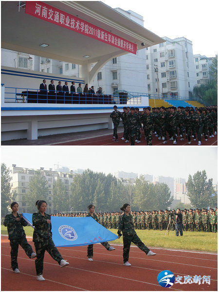 9月23日,河南交通职业技术学院2011级新生军训会操及开学典礼在南校区运动场隆重召开,3000余名新生参加了军训会操及开学典礼。学院领导徐强、张浩、夏青、贺绍华、华志坚、解福泉、毛新年,中国人民解放军55430部队训练基地主任杨业超等领导出席了仪式,各系部师生代表参加并观看了本次活动,会操及典礼由学院党委副书记张浩主持。
