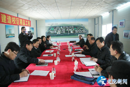 高委副厅长一行深入建设工地,详细询问了一期工程的建设计划及进展情况,并视察了二期工程的规划用地和周边环境。在随后召开的座谈会上,徐强书记、新校区建设指挥部指挥长张浩副书记就工程进展、资金筹措、新校区规划等进行了详细汇报。