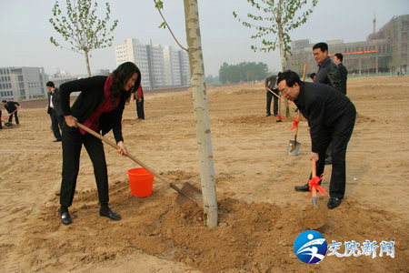 孙廷喜厅长、高委副厅长、霍金花副厅长与学院徐强书记一同种下树苗