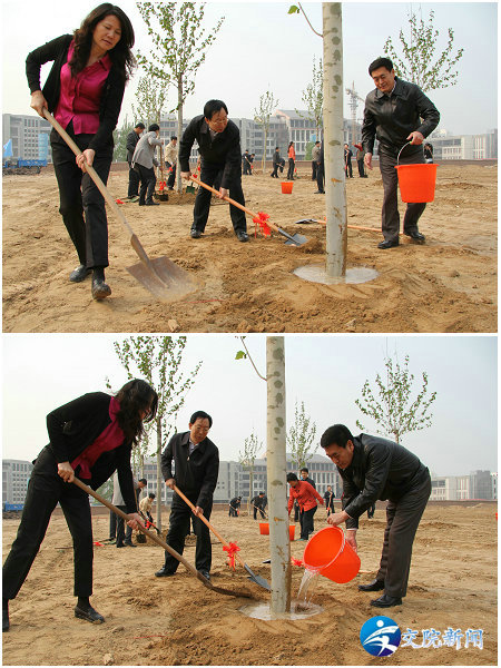 孙廷喜厅长、学院徐强书记、李亚杰院长植树浇水