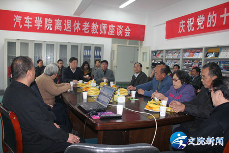 11月10日上午,在党的十八大胜利召开之际,汽车学院召开了离退休老教师座谈会,畅谈学院发展成果。学院党委副书记张浩、院长助理解福泉、汽车学院的全体领导及各教研室主任等参加了座谈会。座谈会由汽车学院宋阳书记主持。