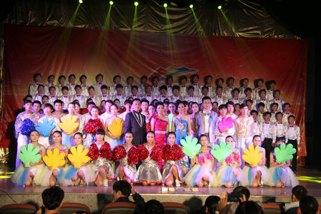 汇演在艺术团精彩的舞蹈《五彩青春》中拉开帷幕。演出紧扣“喜迎校庆,悦动校园”主题, 囊括了歌舞、朗诵、魔术、武术等多种形式。老师和学生各展风采,全场洋溢在师生同乐的欢乐氛围中。教师黄铁安和王蕾分别带来的独唱《蒙古人》、《策马奔腾》充满了民族风情,将晚会推向了高潮; 由武术队带来的《挥舞天地》武术表演可谓锦上添花,给整个晚会增添了亮丽的一笔。最后,演出在大合唱《走向复兴》《跟着共产党走》的歌声中落下帷幕。
