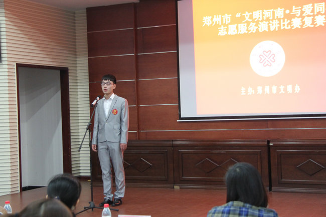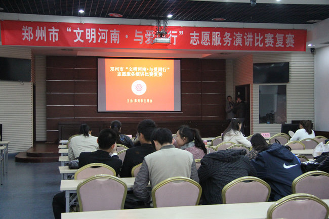 2014年10月30日,郑州市文明办在市总工会组织郑州市“文明河南与爱同行”志愿服务演讲比赛复赛。我院学生王昌、吴顺经过层层选拔脱颖而出,代表郑东新区参加此次比赛,并受到好评。