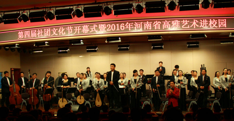 5月10日晚,新校区图文中心二楼报告厅灯火辉煌,管弦悠扬,2016年河南省“高雅艺术进校园”河南民族乐团专场音乐会在这里隆重举行,由此拉开了学院第四届社团文化节的帷幕。河南民族乐团党委书记、团长李长明,副团长陈霞、王维哲,学院领导孙建立、赵兰州、张瑞春以及四百余名师生共同欣赏了此次音乐会。