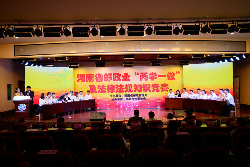 5月7日,由河南省邮政管理局主办、学院承办的全省邮政业“两学一做”及法律法规知识竞赛在学院新校区图文中心二楼报告厅举办。来自省邮政管理局、17个市级邮政管理局和12家重点品牌快递企业的30支队伍、120名选手参加了比赛。省邮政管理局党组书记、局长丁平,学院院长李强,省政府法制办副主任侯学功,省直机关工委副书记陈世光,省直机关工委工会副主任郭小达等出席了活动。 省邮政管理局党组书记、局长丁平在大赛动员讲话中强调指出,有关人员要密切配合,协调联动,把比赛组织好;参赛选手要用饱满的精神状态,全身心投入,赛出水平;赛后各单位要立足实际,继续深入开展“两学一做”学习教育和学法用法工作。 竞赛分预赛和决赛两场,采取现场问答形式,各参赛队伍认真投入、精心准备、勇争先进。最终,管局组、企业组各有一支队伍获得一等奖、两支队伍获得二等奖、三支队伍获得三等奖。