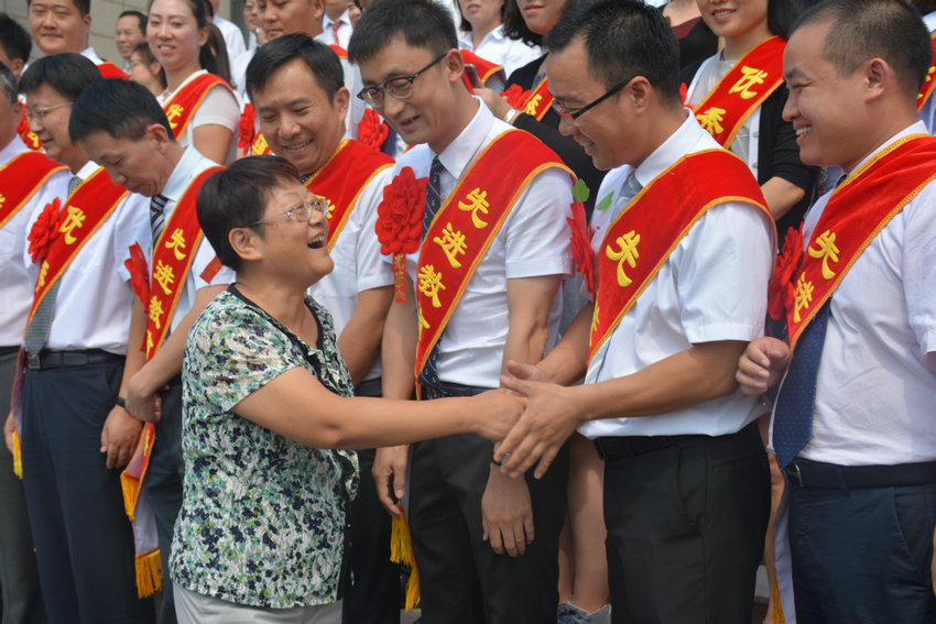 在新校区图文中心楼前,张琼亲切地与受到教师节表彰的先进集体代表、优秀教师、先进教育工作者和优秀辅导员握手交谈,向他们表示节日的祝贺。