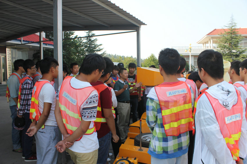 9月11日早上7:30,在教学楼前的空地上,我们看到,十余名学生围在刘伟老师周围,认真听取老师讲解落锤式弯沉仪的操作规范,并在老师的指导下进行实际操作。刘老师说:“今天上午,在给这个小组讲解过后,会让他们每一个人在老师的指导下进行至少两次实际操作练习,掌握落锤式弯沉仪的使用。下午,我会带领他们到达弯沉路段,由他们亲自操作弯沉仪进行实地测量。晚上再将下午的测量数据进行汇总、计算并得出结论”。下午,在第十教学点,我们果真见到这一组学生正在操作弯沉仪对弯沉路段进行测量。当问到他们在这里的收获时,他们不约而同地表示:“比起课堂上单纯的理论学习和抽象概念,在这里能够边学习边实操,我们接受起来更容易,学习效果更好。”
