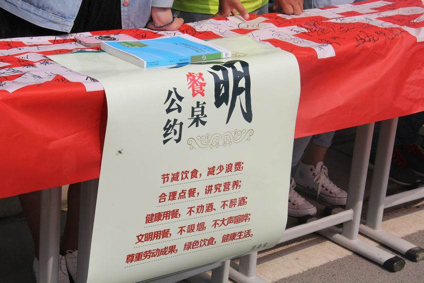 本次活动由“文明餐桌”签名仪式和微博“交院光盘”两项内容组成。中午时分,我院师生热情参与,纷纷在写有“文明礼仪进餐桌,不剩饭菜讲节约”的横幅上签下自己的名字。同时,团委还向广大师生发出了以“文明用餐、节俭惜福”为主题的倡议。