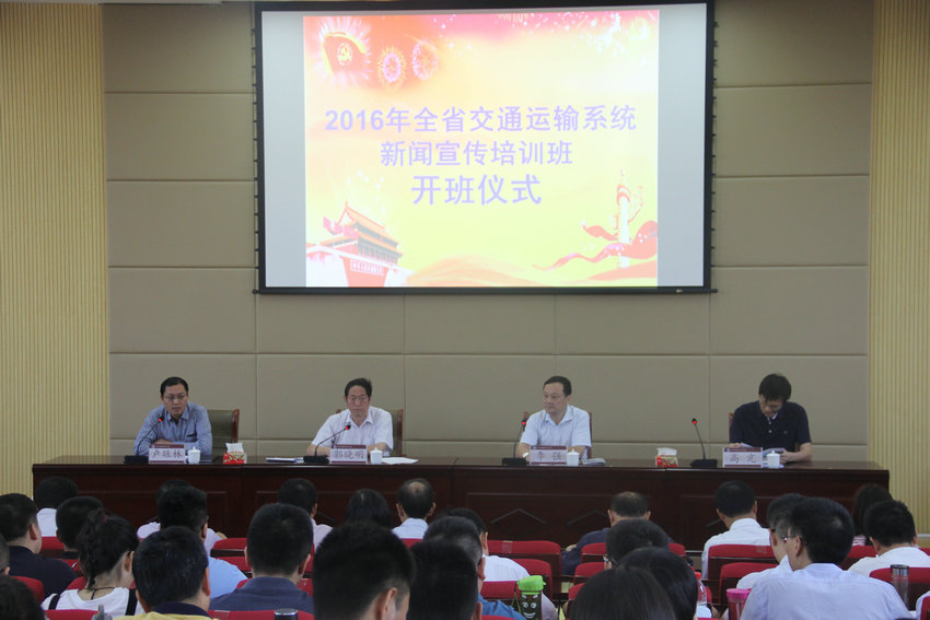 9月21日——22日,2016年全省交通运输系统新闻宣传培训班在学院新校区举办。厅党组成员、巡视员郭晓明,学院院长李强,副院长卢旺林,大河网总经理高亢参加开班仪式。
