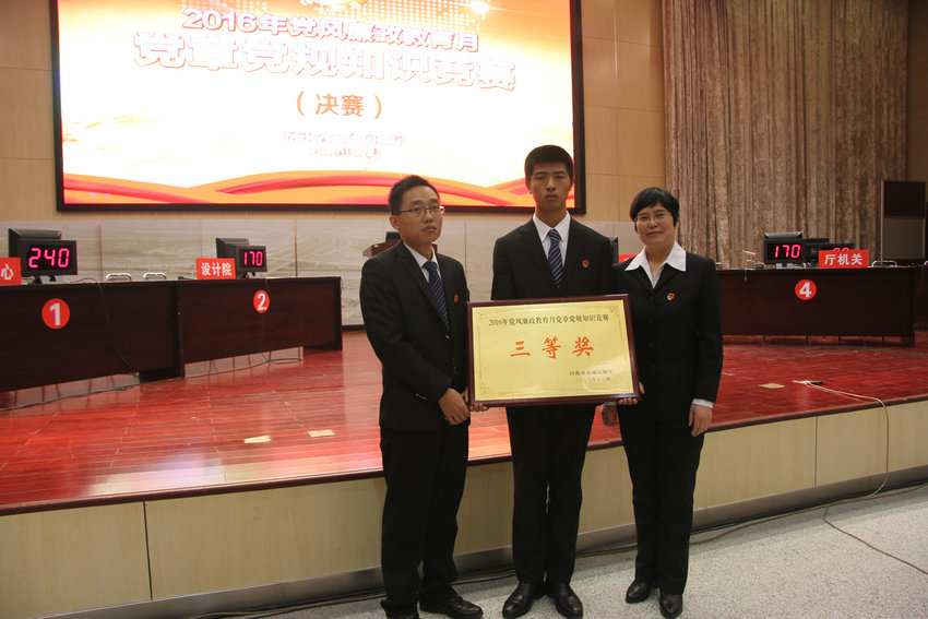 12月22-23日,由河南省交通运输厅主办的党章党规知识竞赛在厅三楼会议室举行,学院代表队经过激烈角逐,以高分通过预赛,在决赛中取得了三等奖。