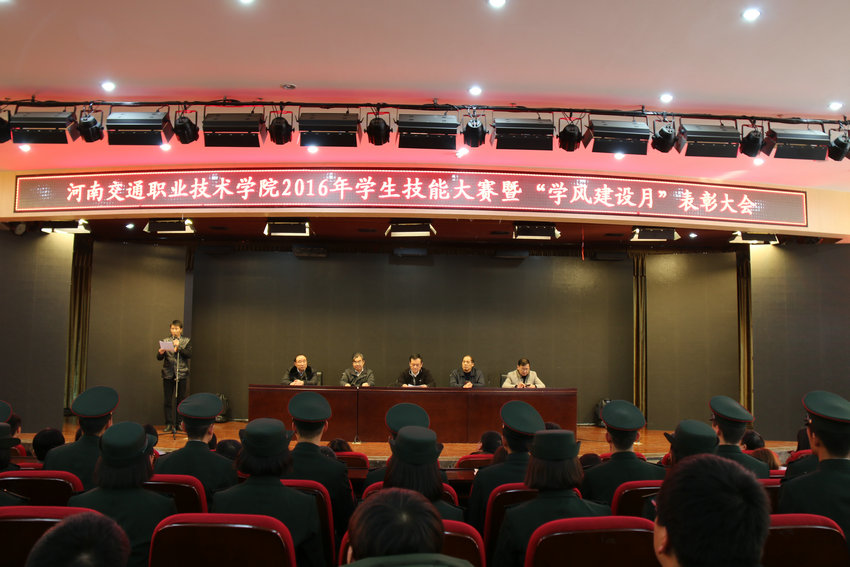 大会在雄壮的国歌中拉开了序幕。副院长贺绍华宣读了《河南交通职业技术学院关于表彰2016年微课教学比赛获奖个人的决定》,副院长夏连学宣读了《河南交通职业技术学院关于表彰2016年学生技能大赛暨“学风建设月”活动获奖个人和团体的决定》,党委副书记孙建立宣读了《河南交通职业技术学院关于表彰2016年度先进班集体、三好学生、优秀学生干部的决定》和《河南交通职业技术学院关于表彰2015-2016学年国家奖学金、国家励志奖学金获得者的决定》。学院领导为获得表彰的先进个人和集体颁奖。建筑工程系岳阳同学代表获奖学生发言,讲述了参赛过程的心得体会;汽车学院袁荷伟老师代表获奖教师畅谈了技能竞赛的感悟和指导大赛的经验。