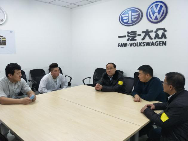 2017年1月17日,在新春来临之际,学院副院长解福泉、汽车学院党总支书记刘向杰等一行代表学院赴成都看望慰问“一汽-大众”生产实习基地的实习学生。