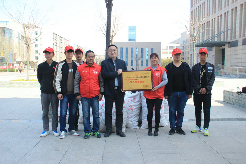 4月1日下午,团委、工会联合郑州慈善爱心公益联盟在图书馆前举行“衣暖人心”慈善捐赠暨授牌仪式,郑州市慈善总会办公室主任程华、团委书记刘甲玉及10余名志愿者代表参加活动。