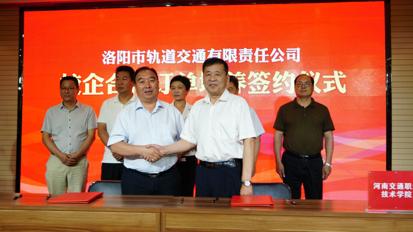 6月22日,学院与洛阳轨道交通公司校企合作订单培养签约仪式在洛阳举行。学院副院长贺绍华、教务处、招生就业处、轨道交通学院负责同志参加了签约仪式。