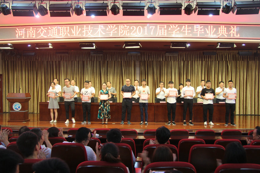 典礼在雄壮的国歌声中拉开帷幕,学院党委副书记孙建立宣读了2017届河南省优秀毕业生、学院优秀毕业生表彰决定,院长李强为省级优秀毕业生颁发荣誉证书。优秀毕业生代表李世康、辅导员代表王倩倩先后发言。