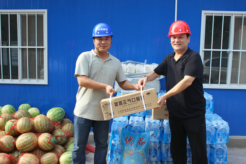 7月31日下午,院长李强一行冒着酷暑天气来到航海路校区调研慰问士官生实训中心及学生食堂改扩建项目全体参建人员,并给辛勤劳作的一线工人赠送了一批防暑降温用品。