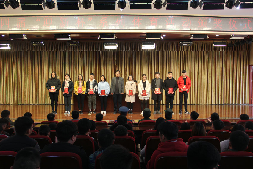 12月7日,由团委、文艺体育部主办的第四届“迎新杯”系列体育活动表彰大会在图书馆二楼报告厅举行。学院副院长解福泉、工会主席张瑞春、团委、文艺体育部负责同志出席大会,团委书记刘甲玉主持表彰大会。