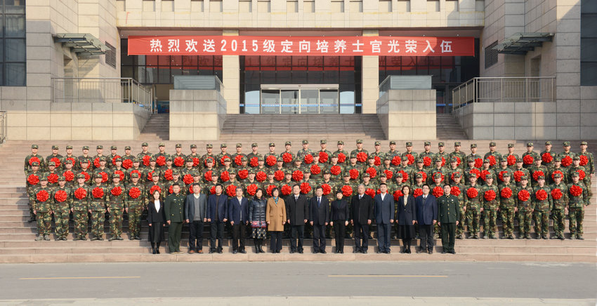据悉,学院定向为火箭军培养的2015级士官生来自汽车运用与维修技术和电子信息工程技术两个专业,按照培养协议,两个专业100名士官生在校两年半时间完成了理论学习、技能训练和军政素质培养,最后半年赴火箭军基地接受专门训练。学院在向士官生传技授业的同时,着力培养同学们的家国情怀,在离校入伍季先后开展了一些列欢送活动:学习习近平主席给南开大学入伍大学生重要回信、开展了“我爱火箭军、现身火箭军”主题征文、召开了一次师生座谈会、向母校提出一条建议、观看一场军事题材电影,举办了一场欢送大会、一场文艺晚会和一次集体会餐,鼓舞士官生牢记母校重托,珍惜在校时光,立志报国,为学院争光,为部队添彩,为实现中国梦强军梦凝聚强大力量,让青春在军营中闪耀夺目光芒。此举,受到了士官生的热烈欢迎和培养部队的广泛好评。 河南交通职业技术学院作为河南省首所定向培养士官高职院校,深入贯彻军民融合发展战略,创新军事人力资源培养模式。2015年以来,先后与火箭军、空军、国防动员部、公安现役部队四个兵种部队达成了定向培养直招士官协议,招生定向培养士官生1220人,兵种数和招生计划数均位列全国第二名。学院围绕士官人才培养“政治思想合格、专业技能突出、军事体能过硬、组训能力达标”的培养目标,集中最优秀的师资、编制最优异的大纲、配备最优质的资源,为部队培养能指挥、会管理、善组训、精技术的士官人才,逐渐形成了士官培养的制度化建设、规范化管理、军事化作风、军营化氛围“四化”模式,受到培养部队、受训部队的高度肯定,赢得社会广泛赞誉。 学院党委副书记孙建立、副院长夏连学、贺绍华,纪委书记赵兰州、工会主席张瑞春,党政办、学生处、士官生大队、招生就业处、汽车学院、交通信息工程系等部门负责人和在校士官生400余人参加仪式。