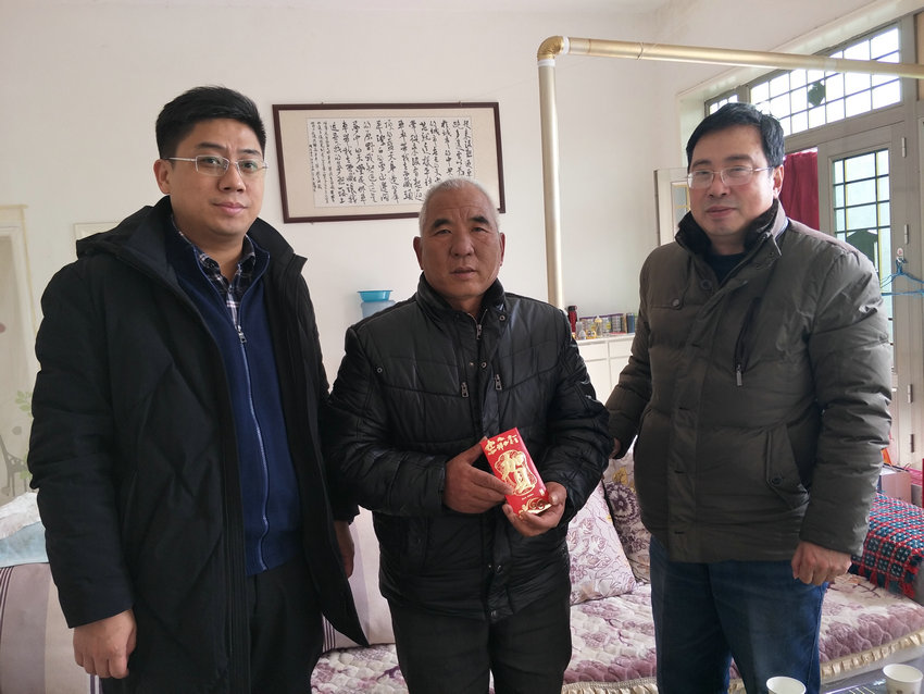 郭晓达书记和张瑞春主席与武耀宗的父母进行了深切交谈,了解家里现状,表达了省直团工委和学院的关切。张瑞春主席代表学院为武耀宗的父母送去了慰问金、慰问品以及新春佳节的祝福。