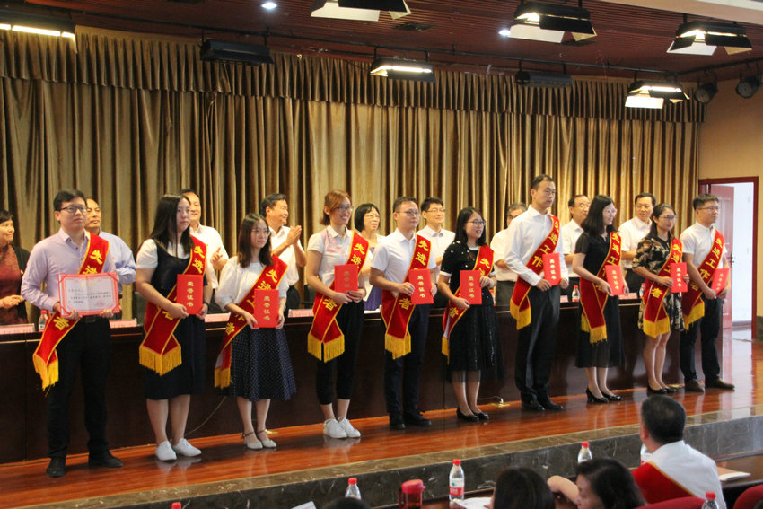 党委副书记孙建立宣读了学院党委《关于表彰2017-2018学年先进集体、先进个人的决定》,授予59名教师 “优秀教师”荣誉称号、26名教师 “优秀教育工作者”荣誉称号、7名教师 “优秀辅导员”荣誉称号,7个内设机构荣获“先进集体”。与会领导向受表彰的先进集体、先进个人以及36名从事教育工作30年以上的教职工颁发了荣誉证书。