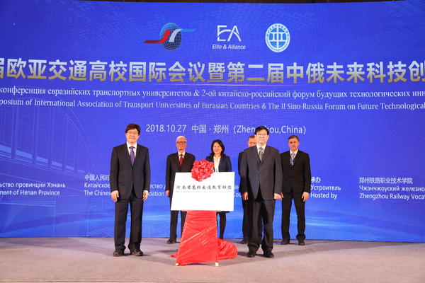 10月27日,在第十一届欧亚交通高校国际会议暨第二届中俄未来科技创新创业论坛期间,河南省委高校工委专职副书记、党组副书记郑邦山,国家铁路局总工程师严贺祥为河南省高校交通教育联盟揭牌,并召开河南省高校交通教育联盟首届成员大会。我校党委书记曹焱、院长李强出席成员大会。