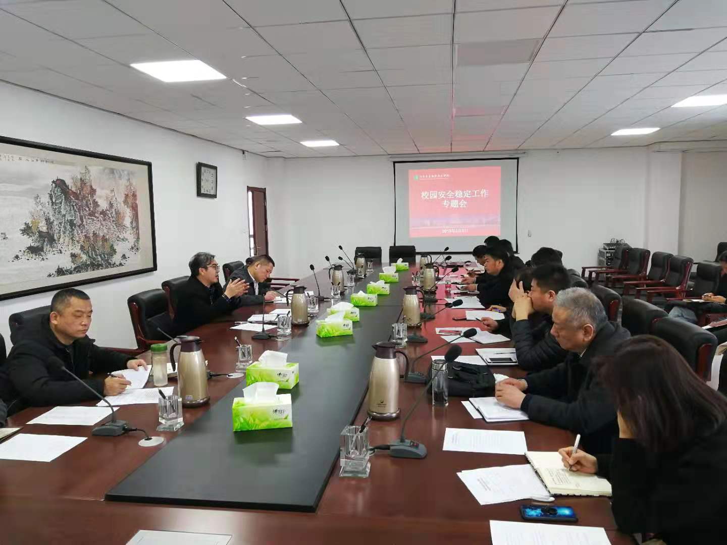 3月5日上午,学院安委会在新校区会议室组织召开了校园安全维稳工作专题会,副院长夏连学主持会议并讲话。党政办公室、宣传部、团委、教务处、教学督导处、学生工作部(学生处)、科研外事处、保卫处、各系(院、部)、图书馆、现代教育技术中心、后勤服务集团等单位负责人参加会议。保卫处传达了“全国学校安全工作电视电话会议” 和“省交通运输系统2019年打击整治枪爆物品违法犯罪专项行动视频推进会”精神,并一同学习了省教育厅、省交通运输厅关于“进一步加强两会期间值班工作的通知”文件精神。